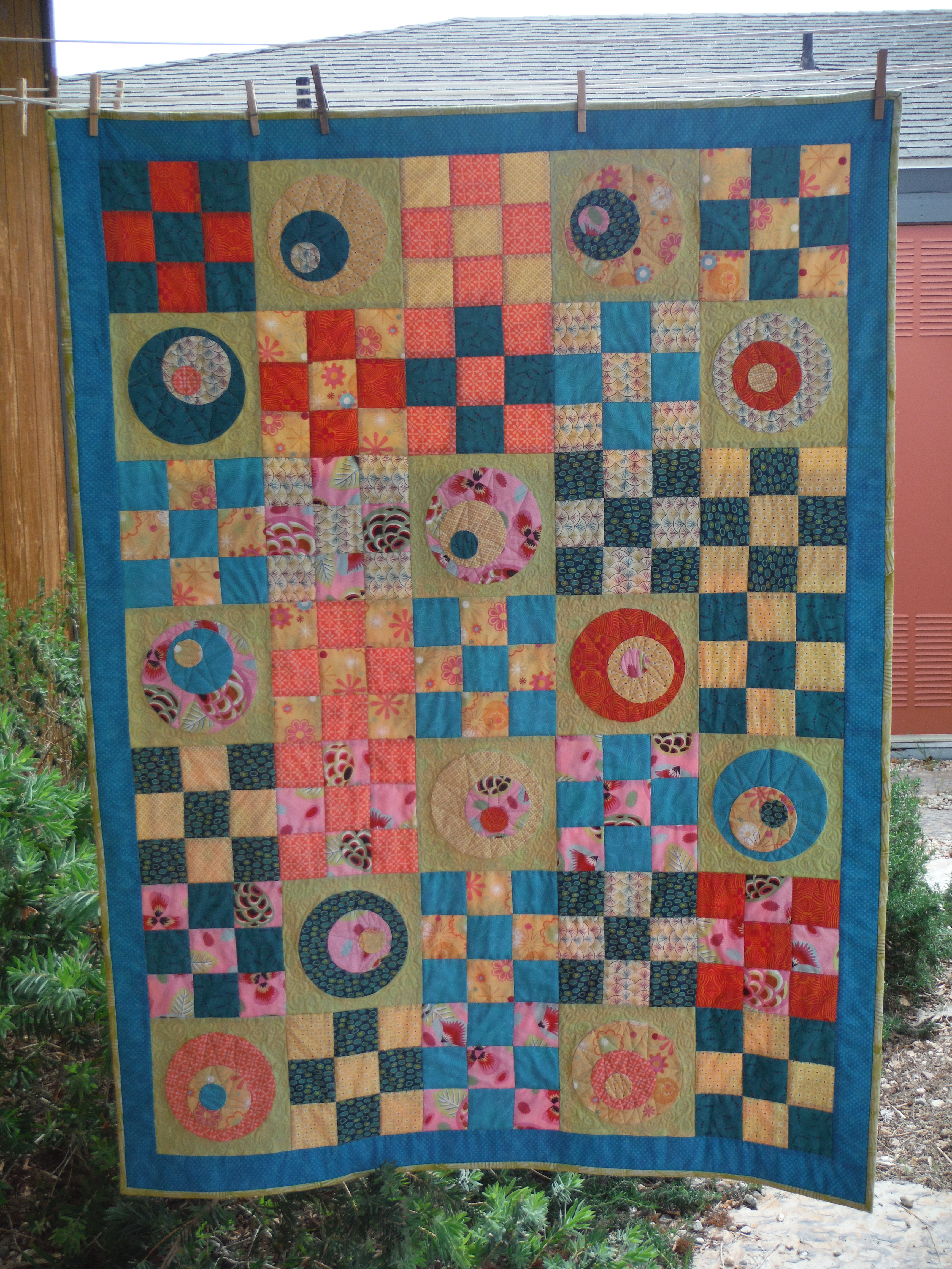Not mine, but I love the action and colors. Yellow is a hard color for me, but it always seems to add a lot to a quilt, when used well.